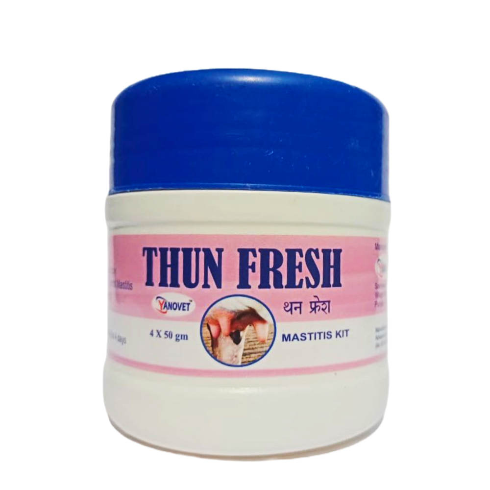 THUN FRESH is a Mastitis Kit designed to enhance the effectiveness of antibiotic treatment for mastitis. It promotes immunity, aids in the repair of inflamed tissues, and ensures faster health recovery.